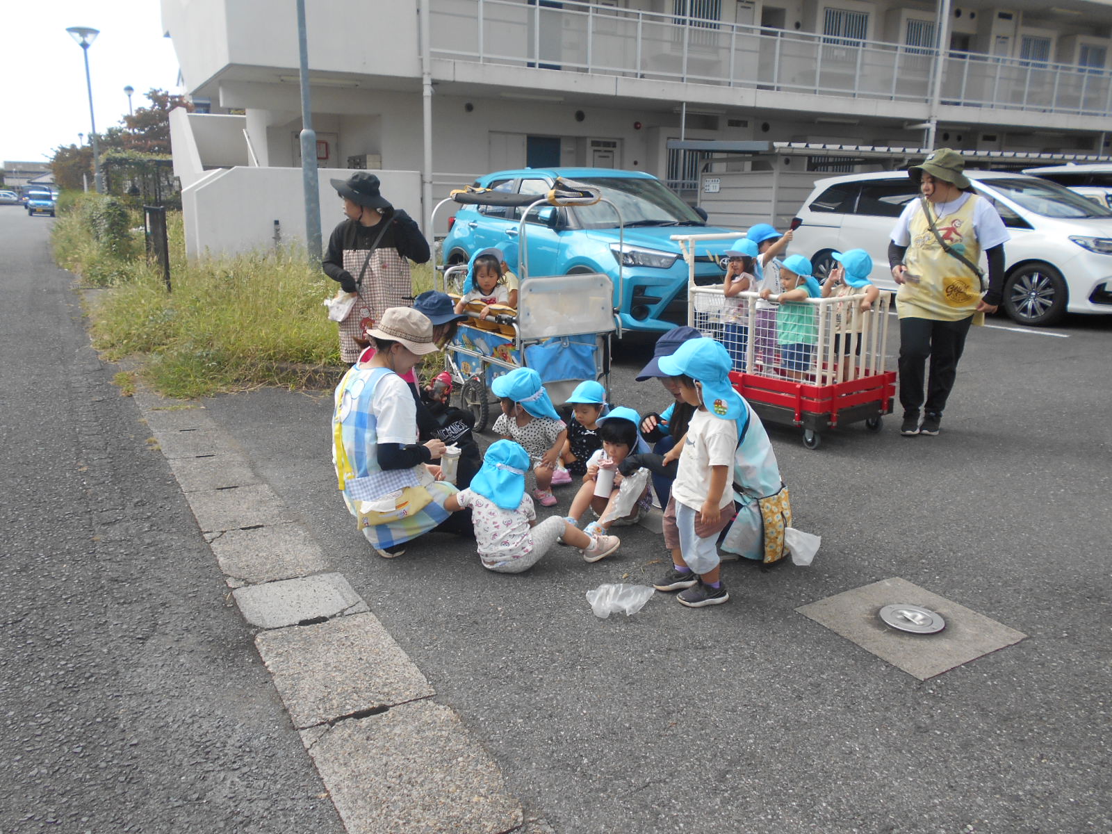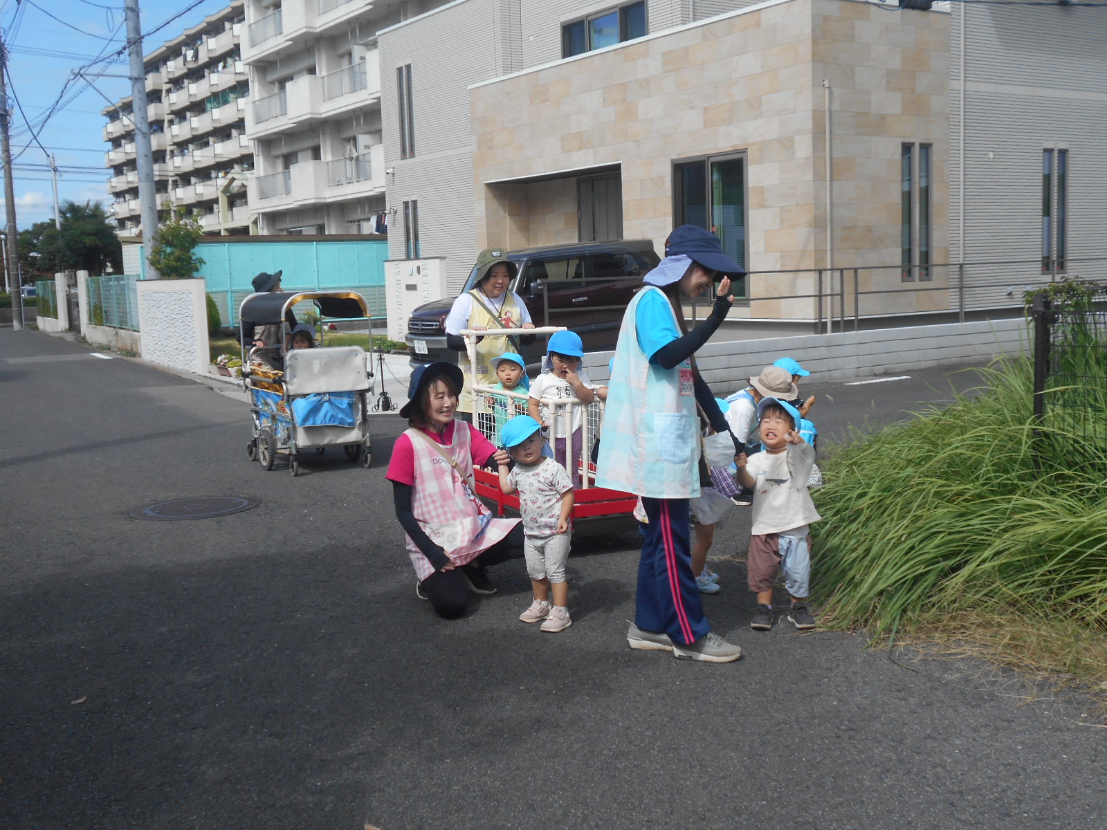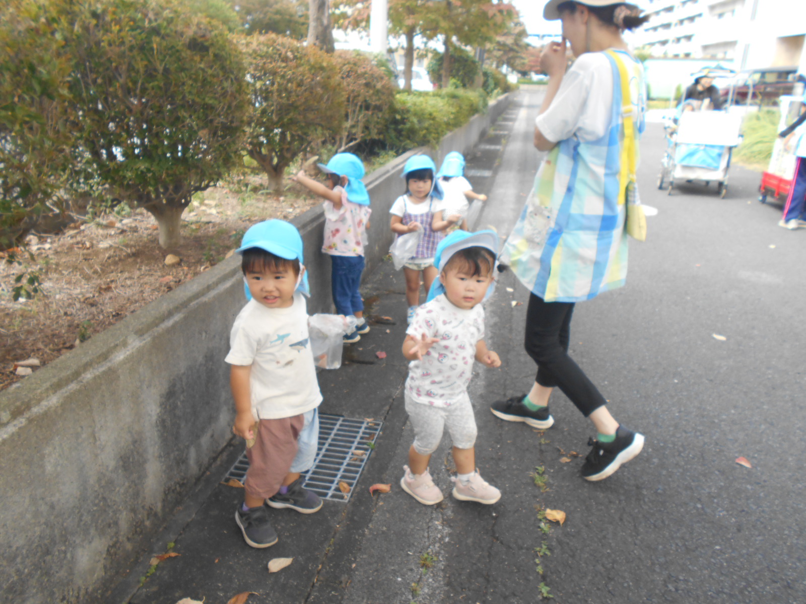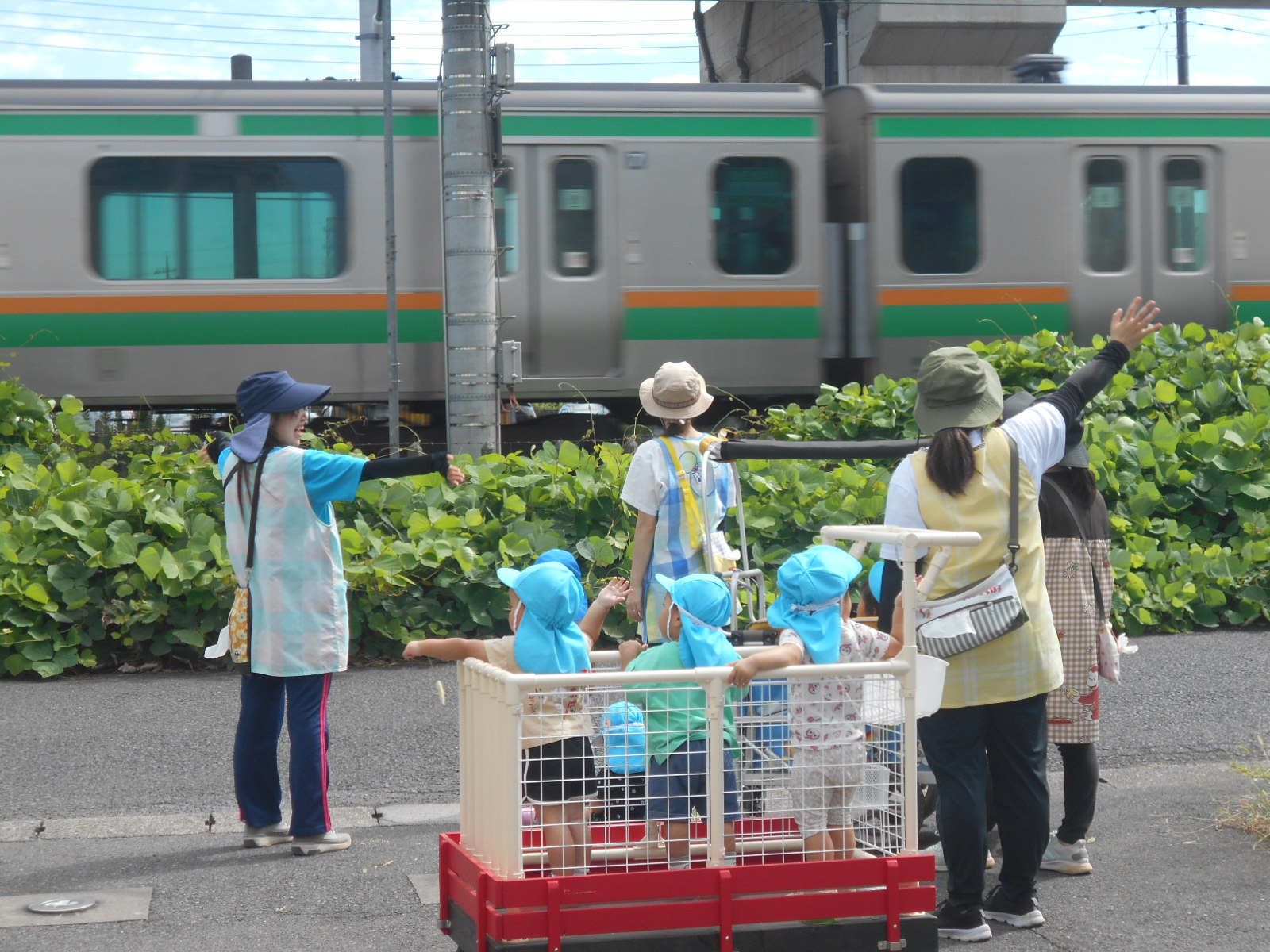 つぼみ・つくし組は、秋晴れのもと電車を見ようとお出かけしました。