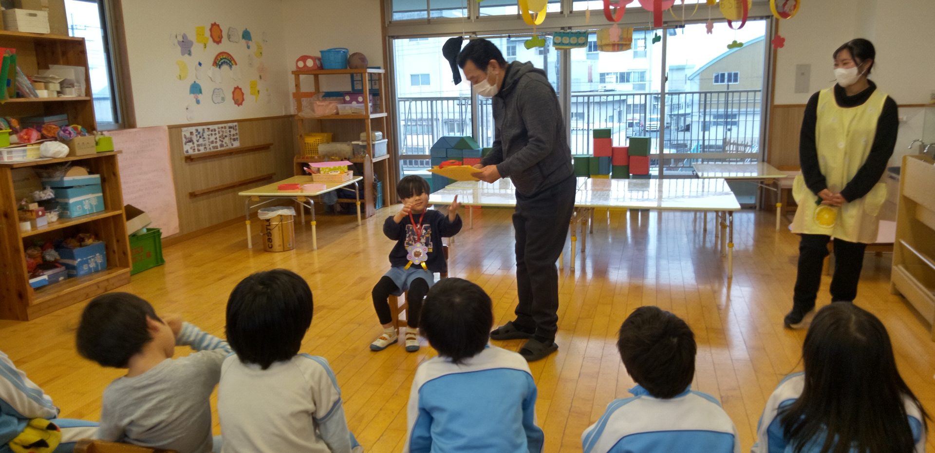 その後も、幼児組・乳児組に分かれて豆まきゲームをして遊びました。