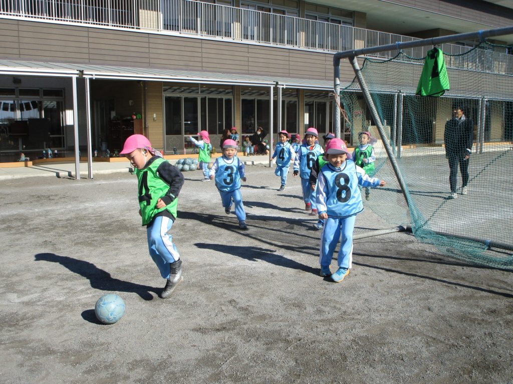 園庭ではそら組が栃木県サッカー協会主催のサッカー教室を行いました。