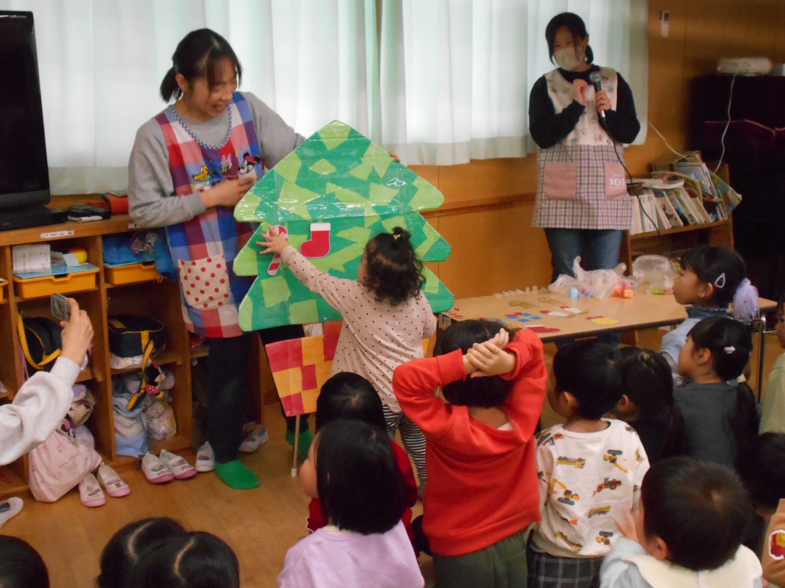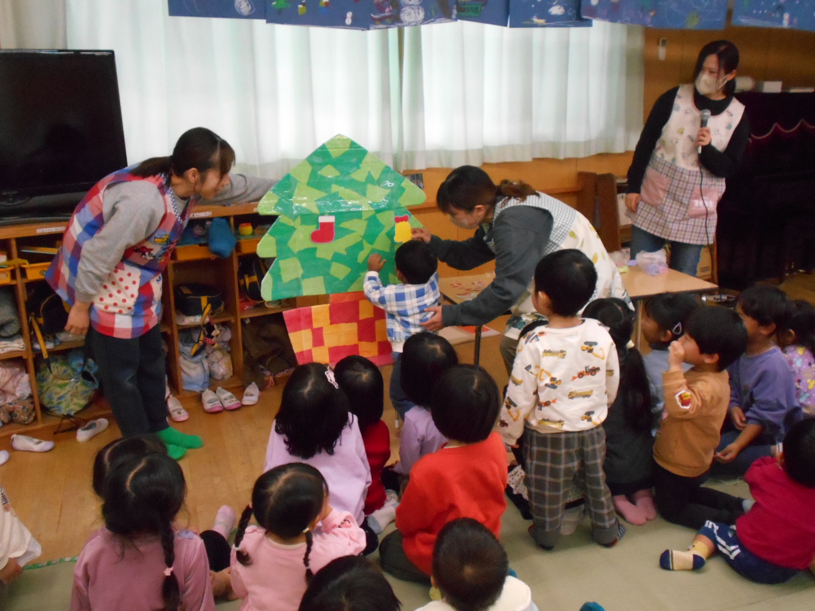 冬休みに入る前にこども園では一足早くクリスマスのつどいを行いました。