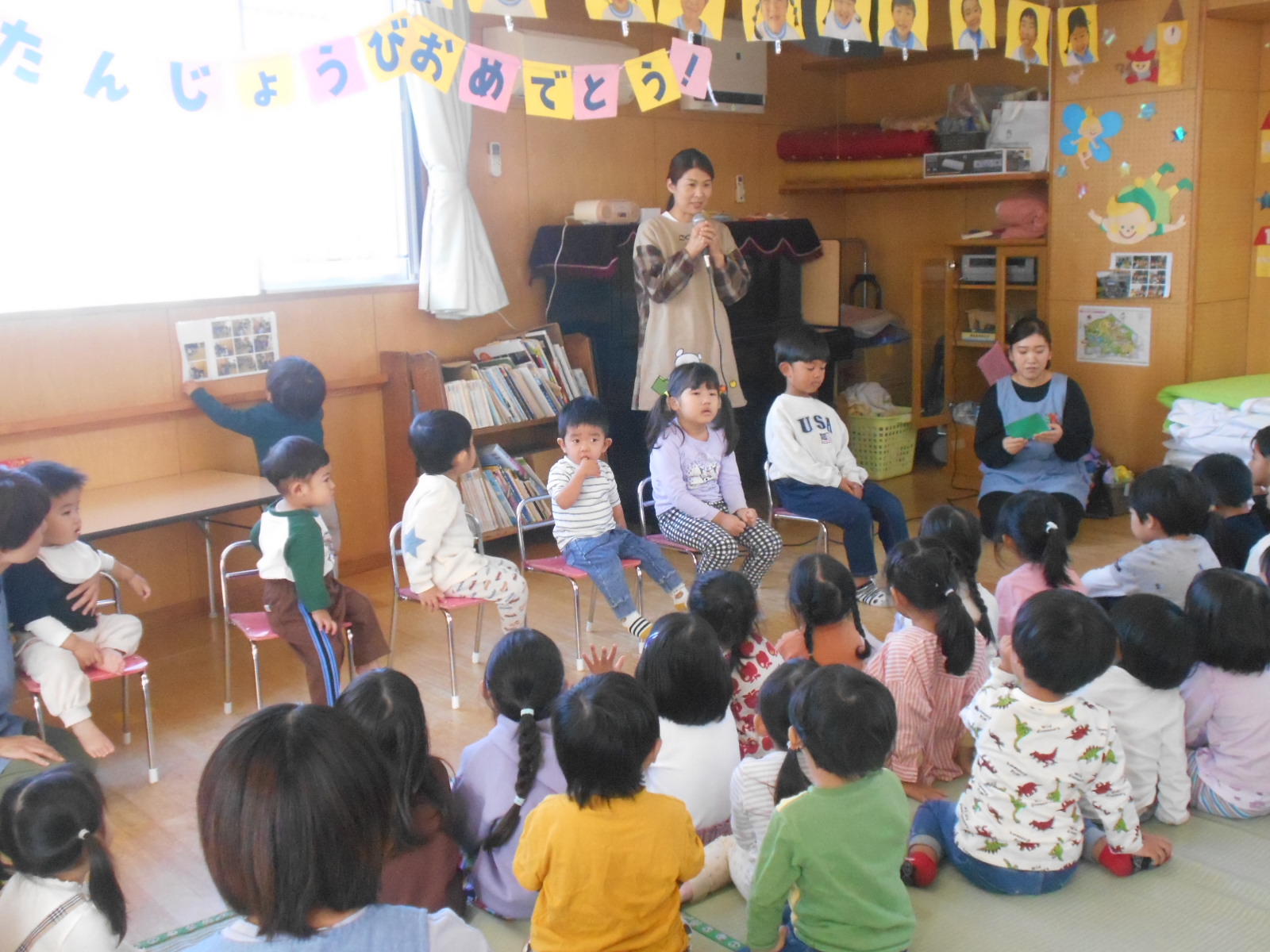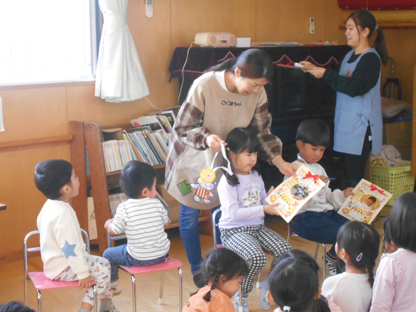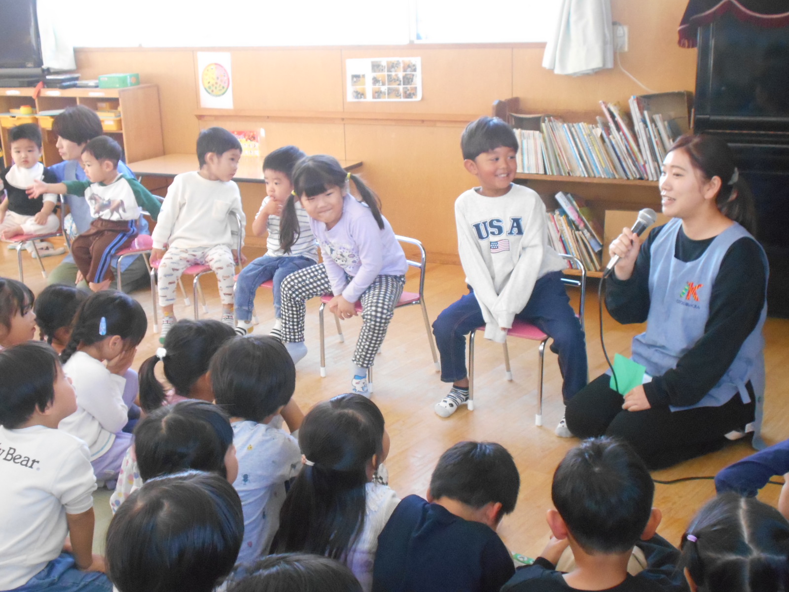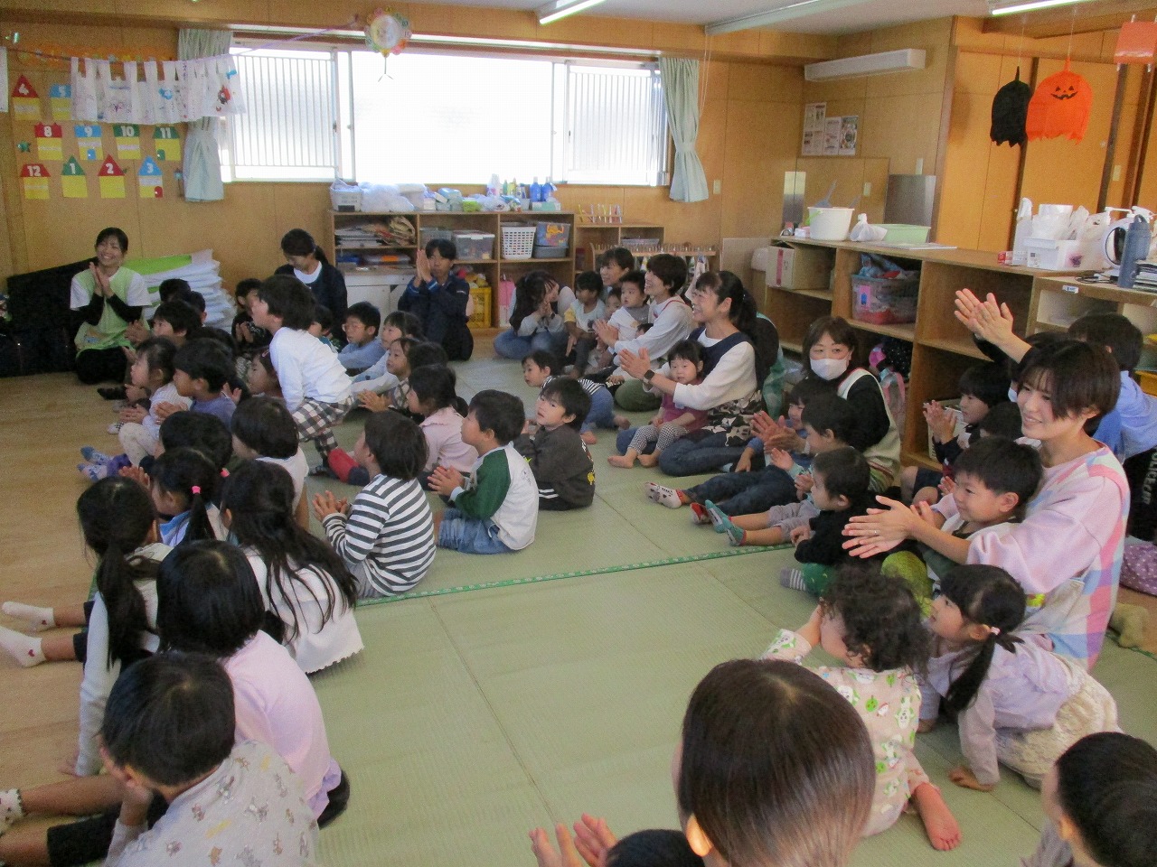 本日は、パネルシアター、手遊びを発表し、また、園児たちとかかわって、とても良い時間を過ごしていたようです。
