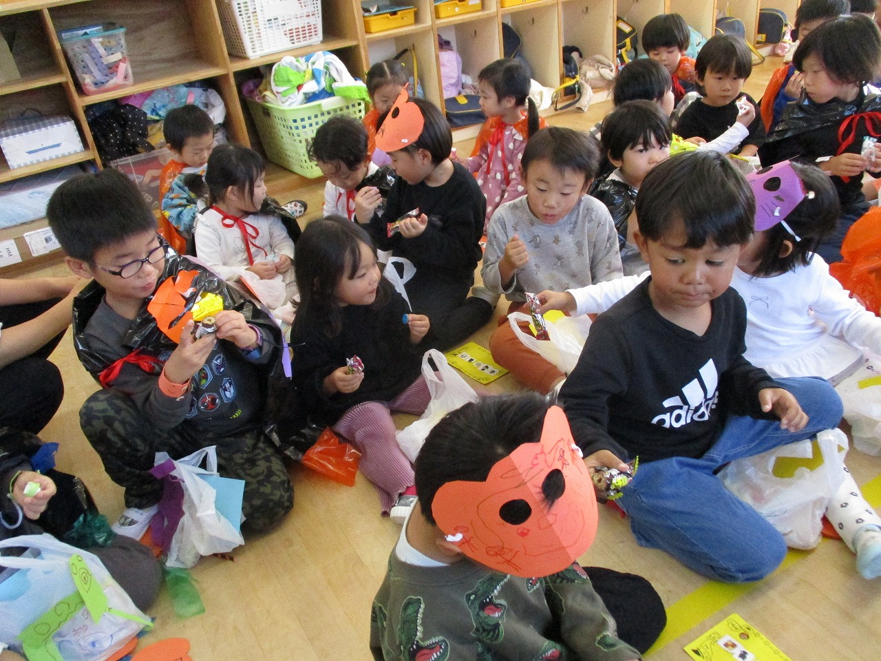 みんなで仮装したり、御菓子を食べたり、とても楽しい時間を過ごしました。