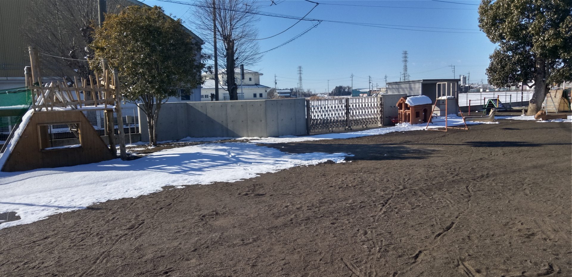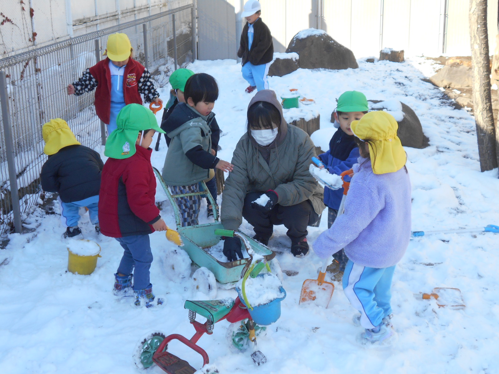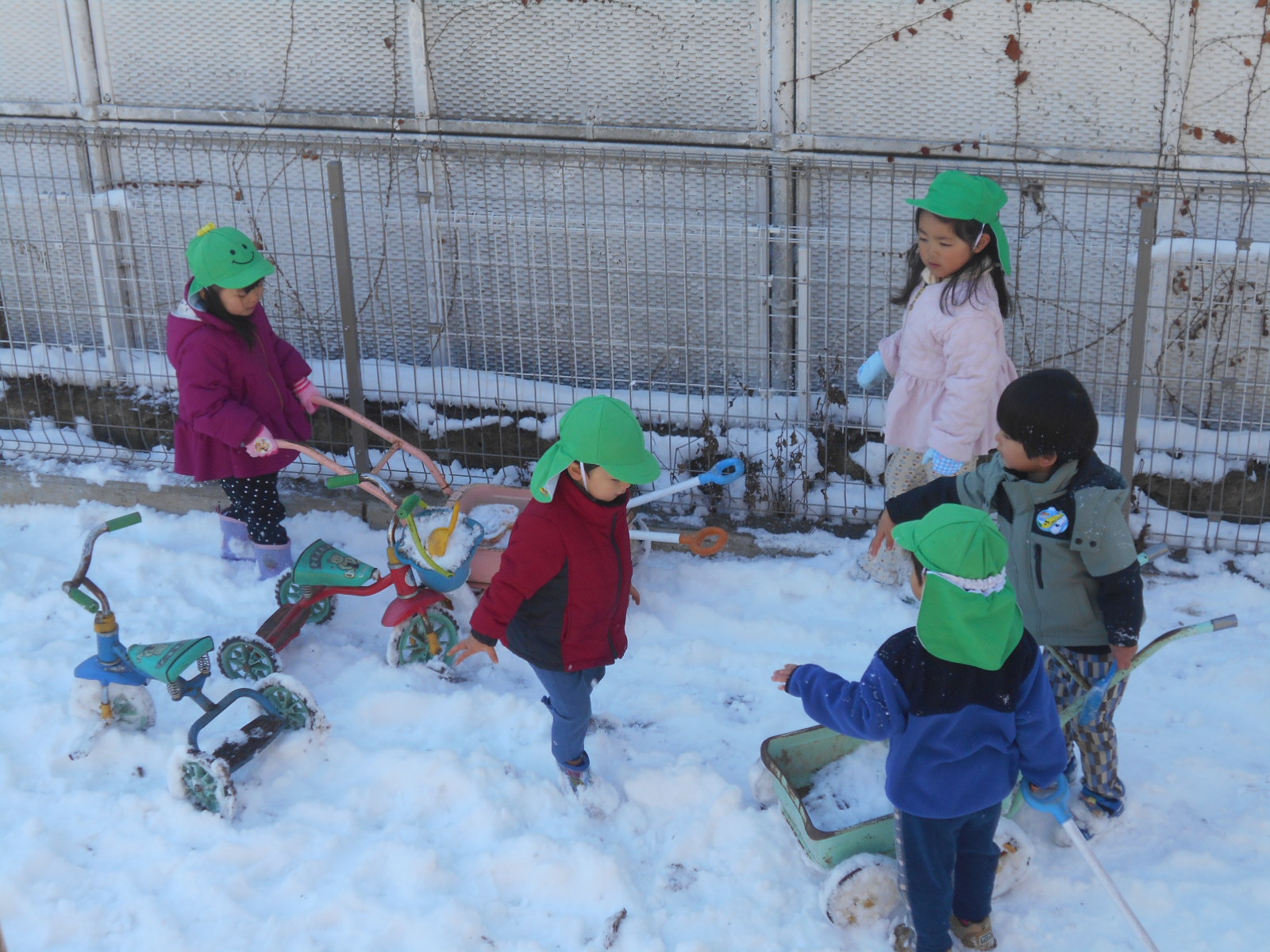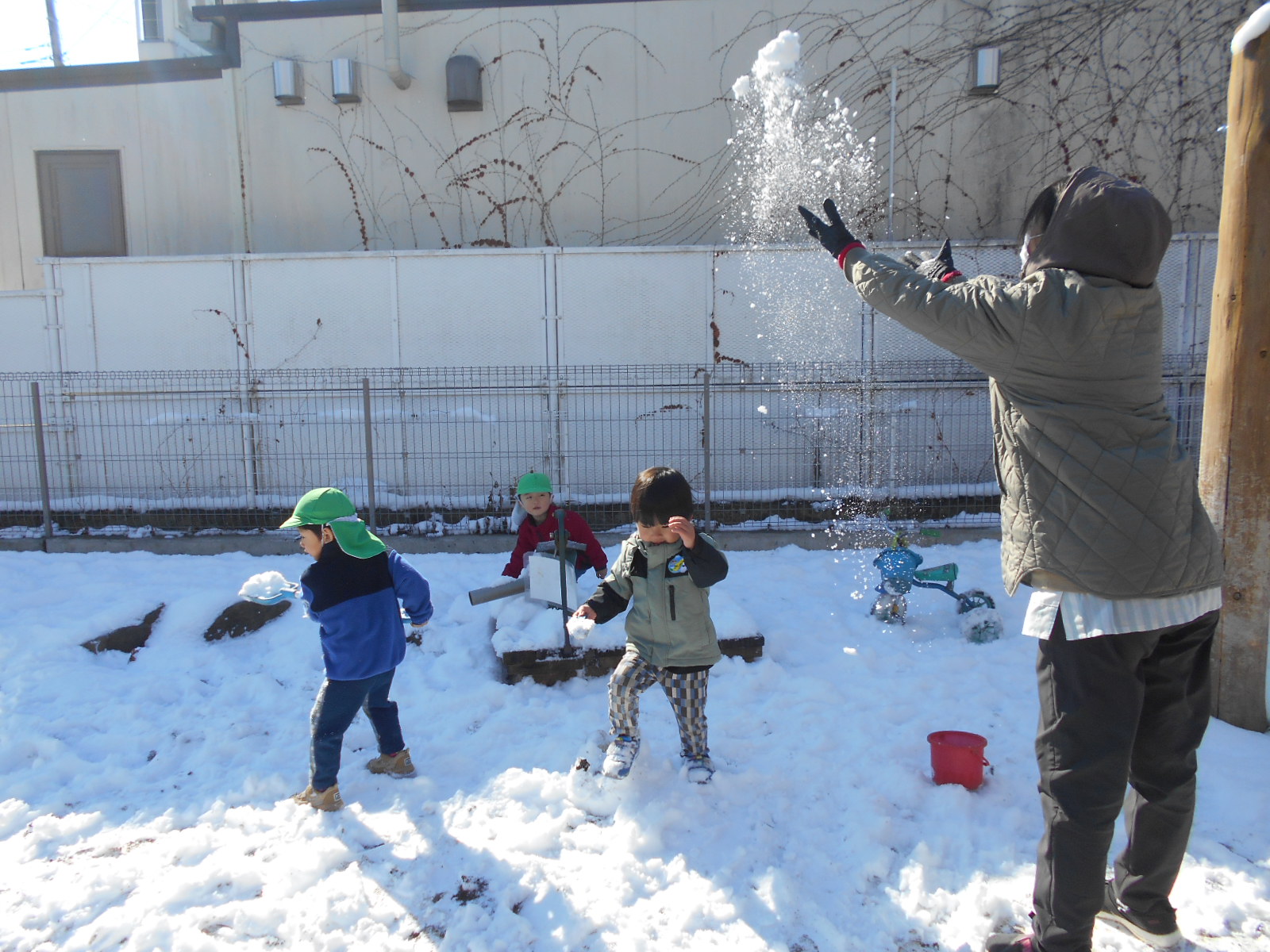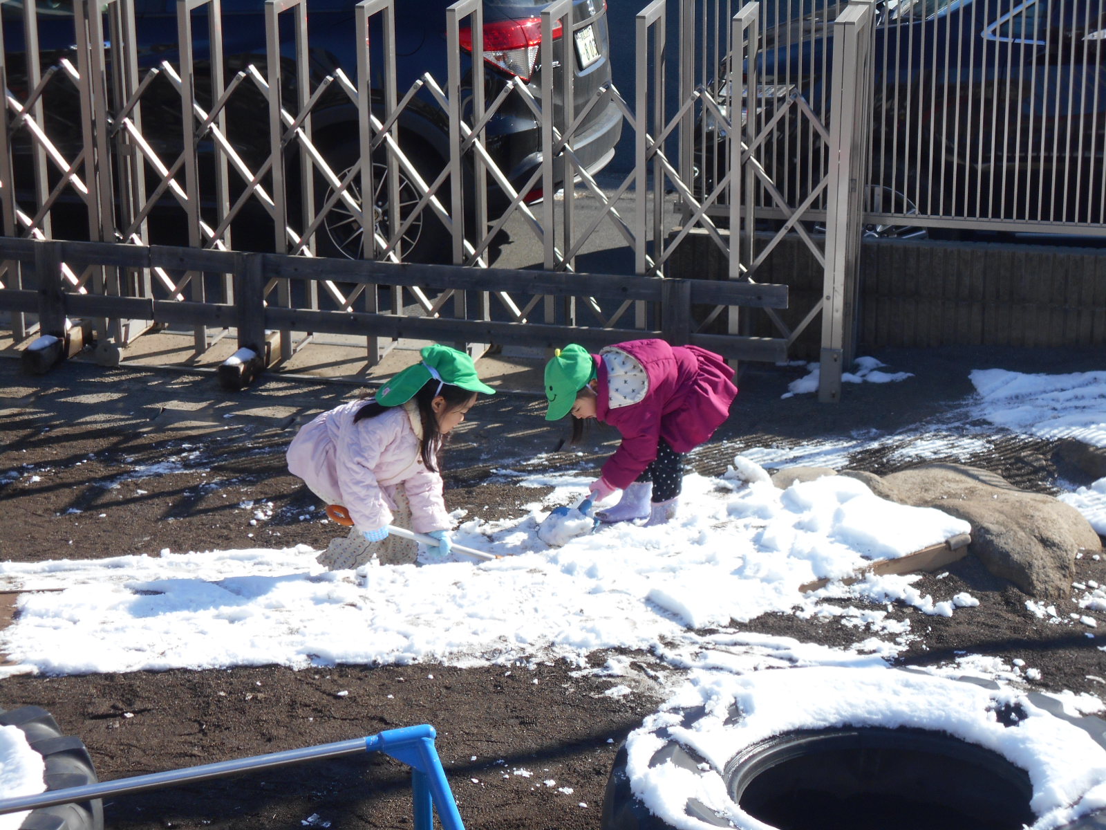 今日の園庭にもたくさん積もっているかと思いきや、残念ながら結構溶けてしまっていました。