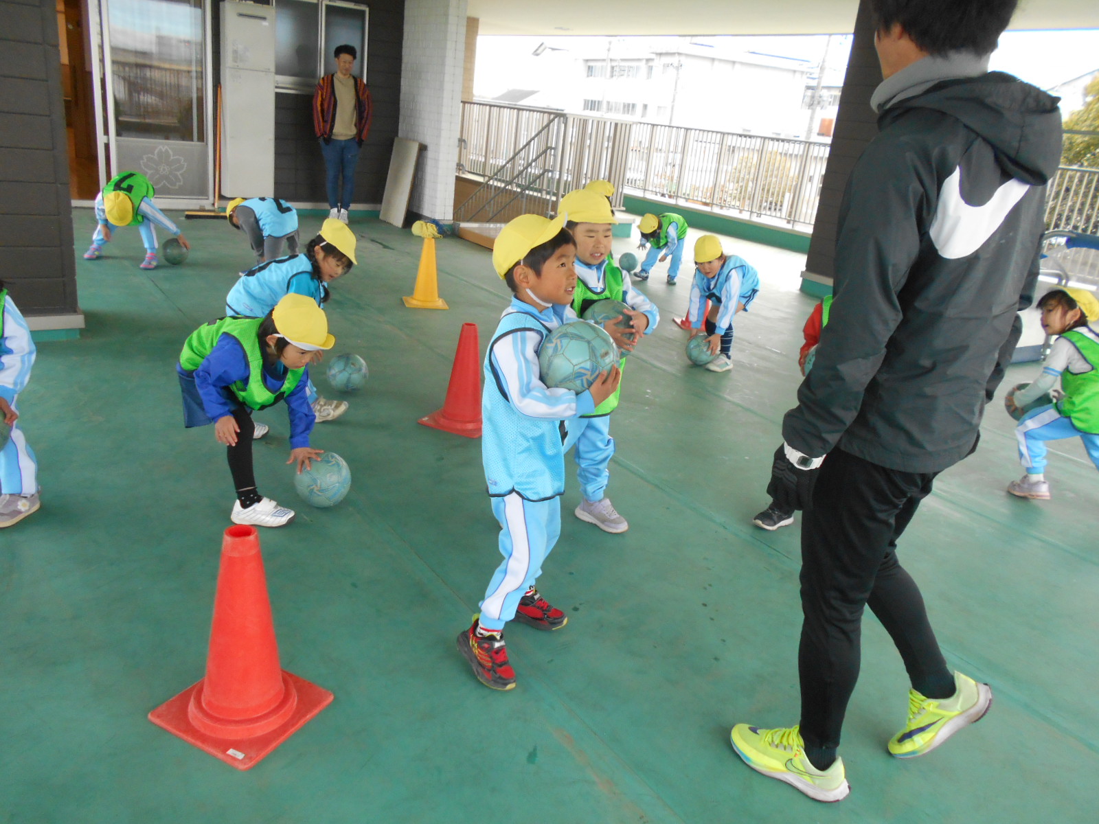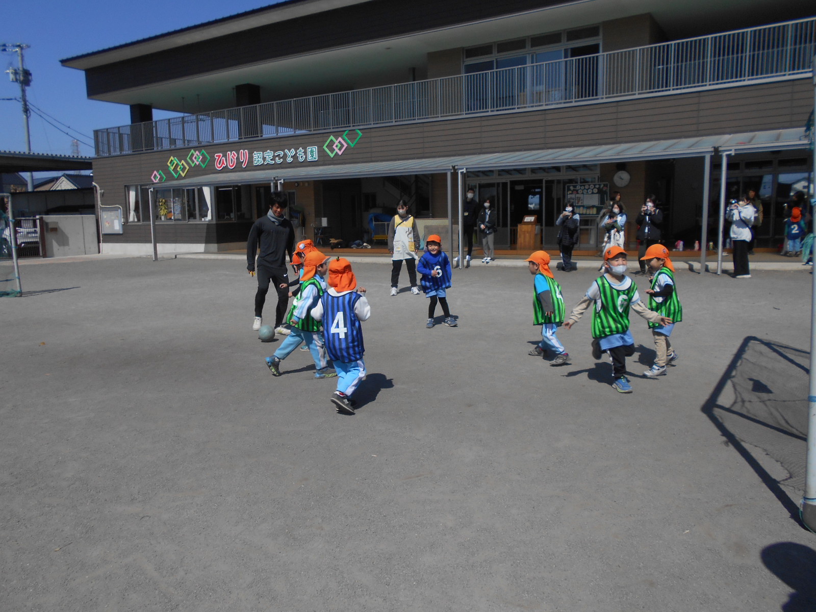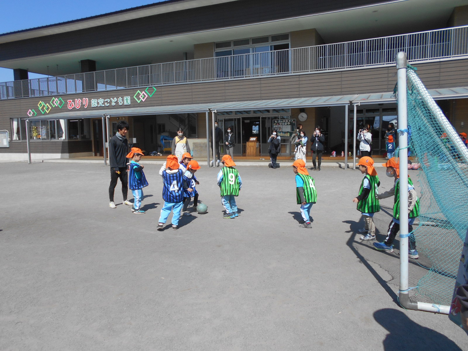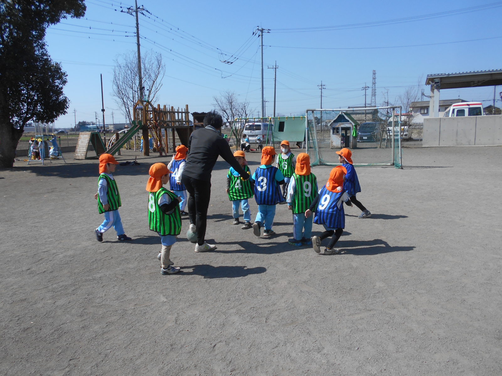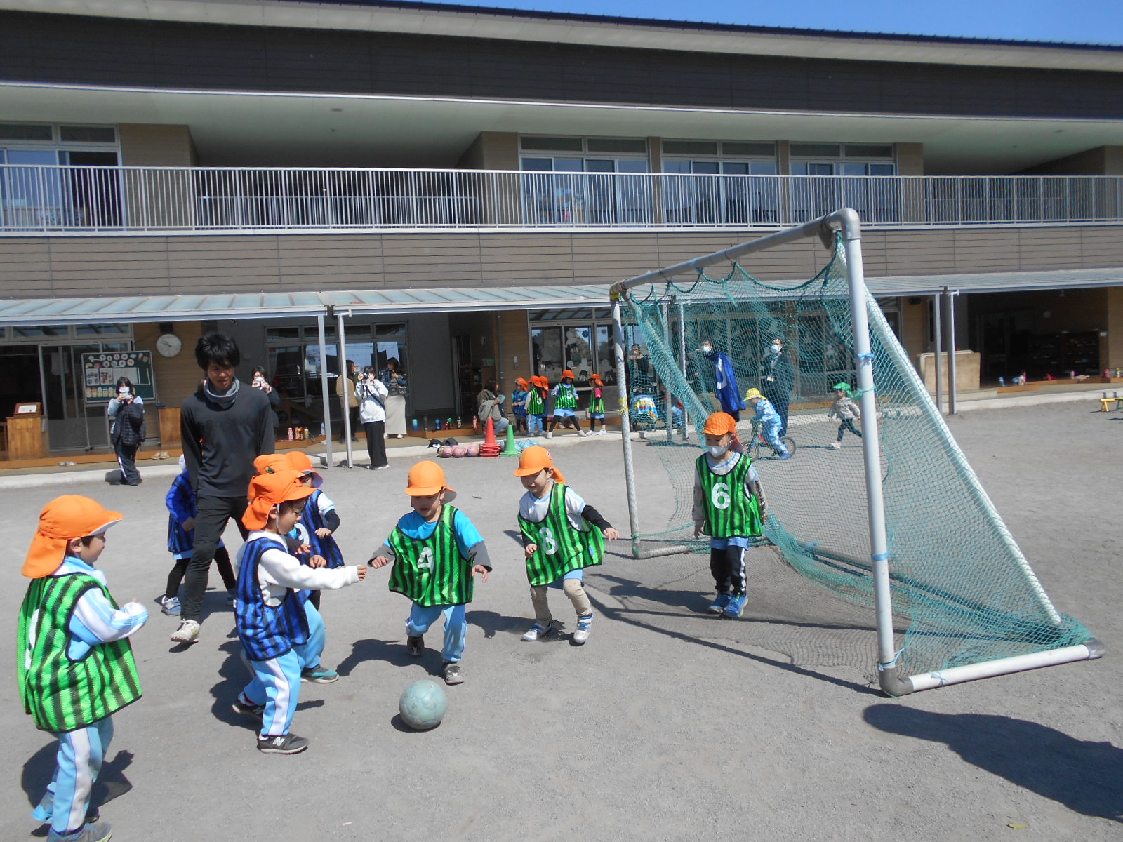 3チーム総当たり戦のほか、子ども達対先生達のエキシビションマッチが行われ